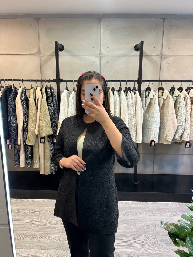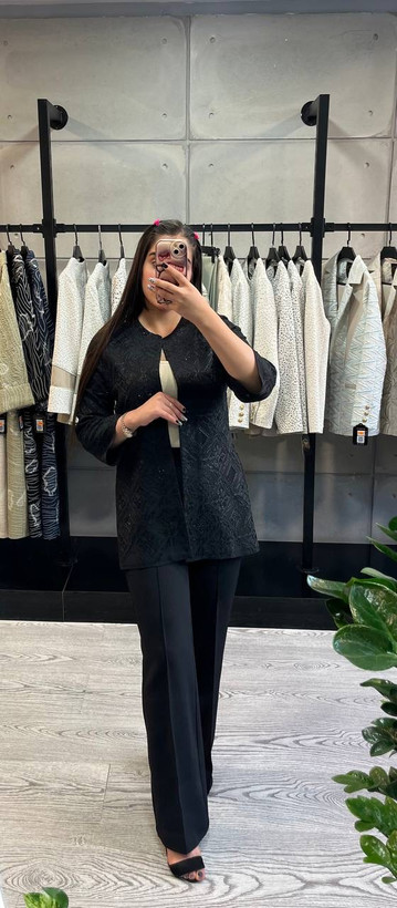 کت وشلوار زنانه حریر گلدوزی با نگین کاری ضریف